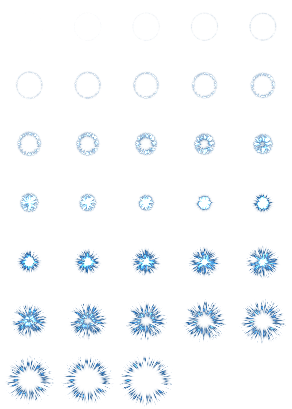 Using an animation flipbook requires additional configuration compared to a single texture. For demonstration purposes, we'll use this texture with 5 columns and 7 rows (right-click and choose Save as…):